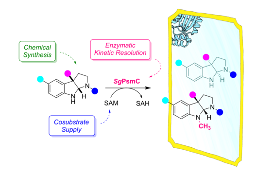 At our institute, we are dedicated to developing new biocatalytic applications to expand the repertoire of chemical tools, especially for natural product synthesis and drug discovery. Our particular focus is on alkyl transferases. Our central tasks include providing suitable enzymes, characterizing them comprehensively, and investigating their potential in biocatalytic processes.